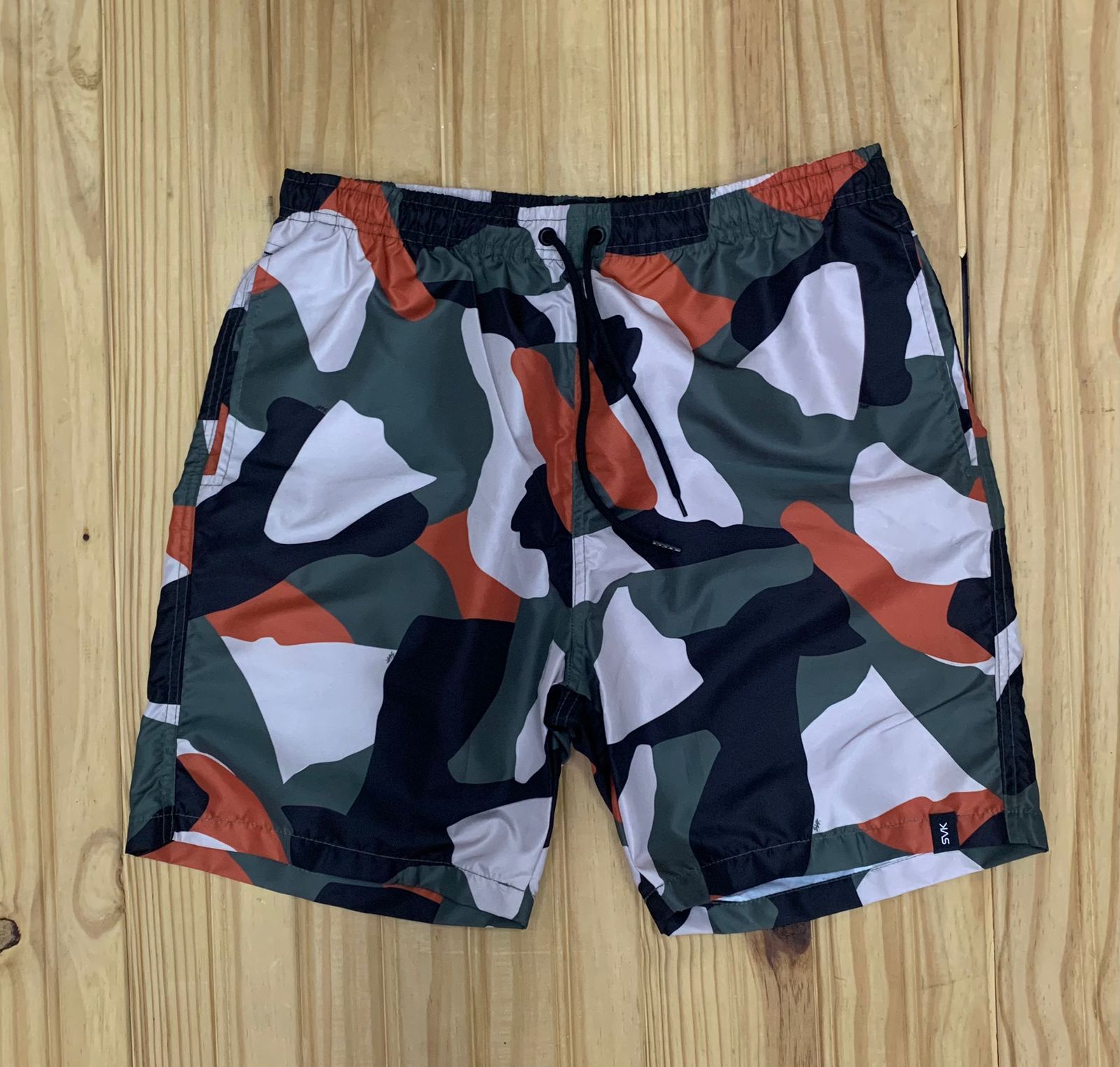 - Estampa Camuflada, nas cores Laranja, preto, verde e cinza;